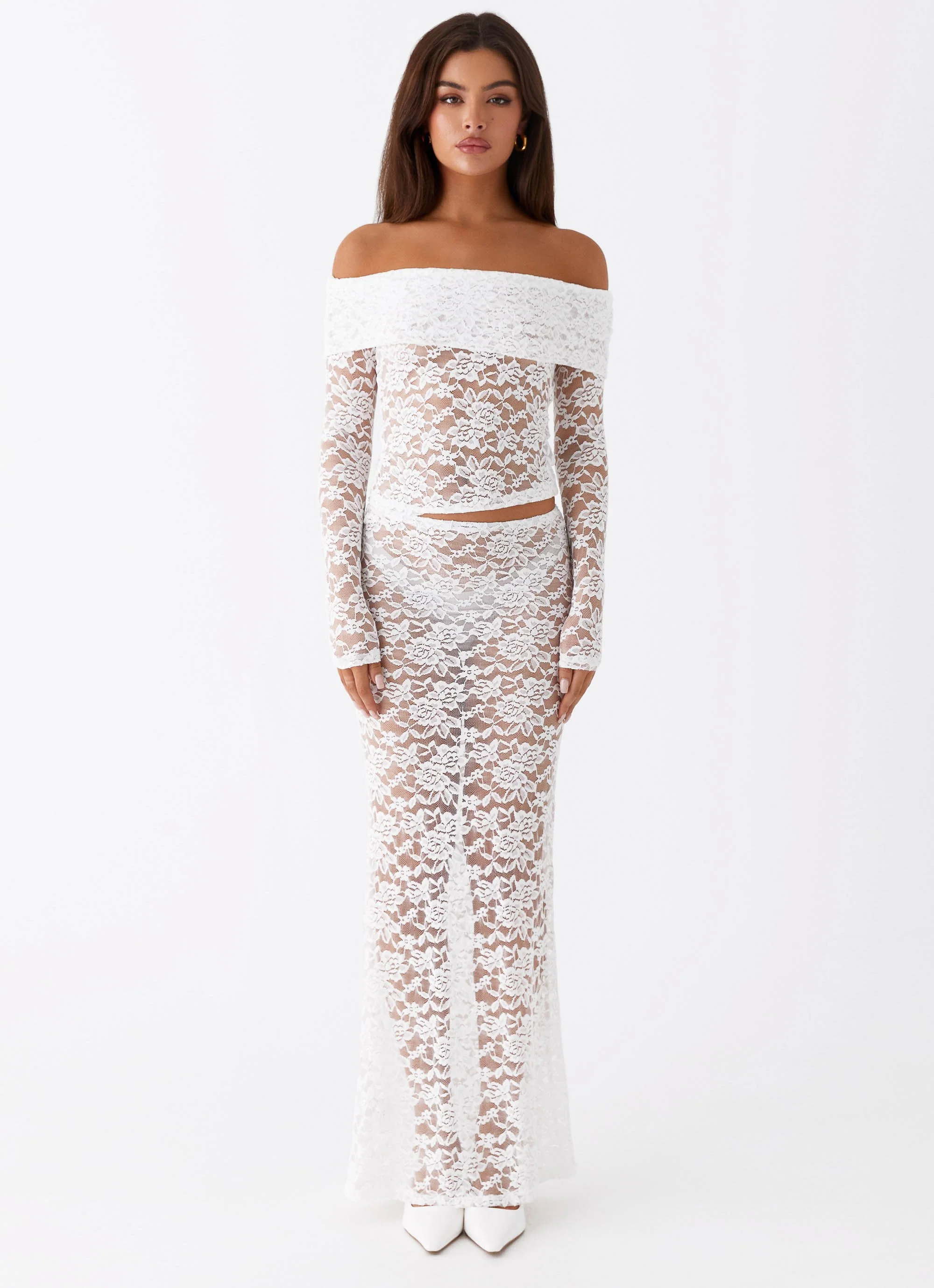 Zephyra Lace Long Sleeve Top - White