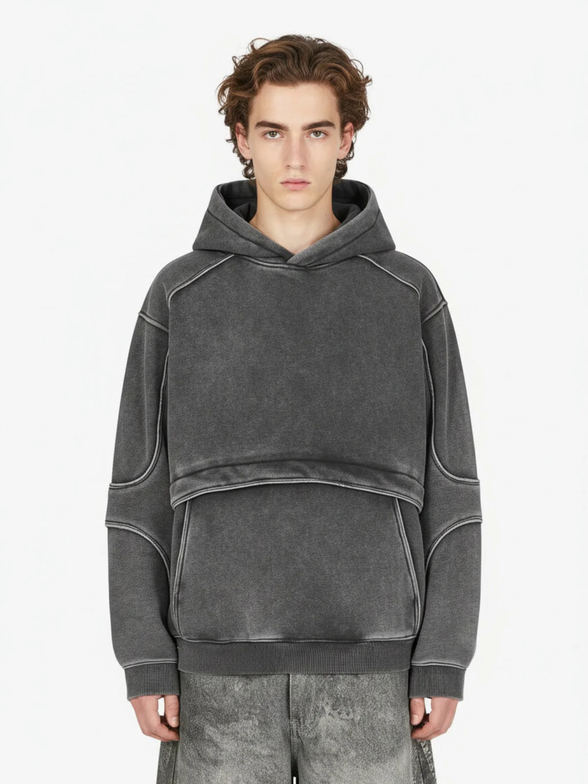 Retro Deconstructed Patchwork Washed Hoodie