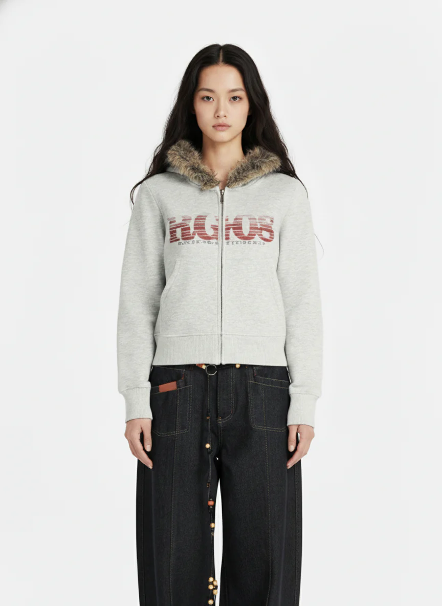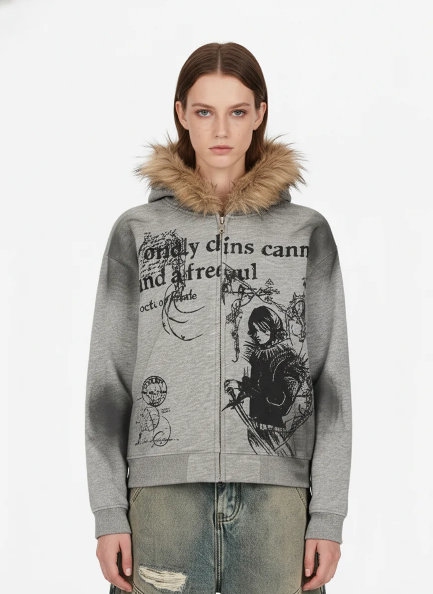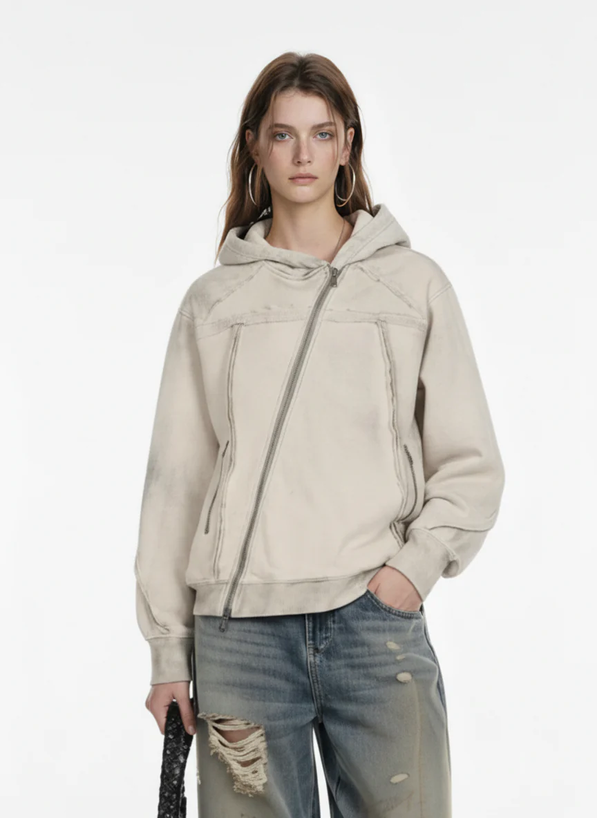 Retro Asymmetric Zip Up Deconstructed Hoodie