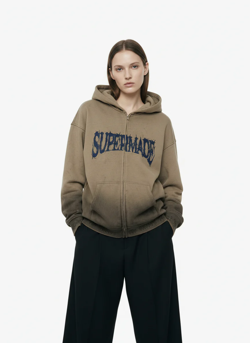 SUPERMADE Thorn Embroidery Zip Hooded Sweatshirt