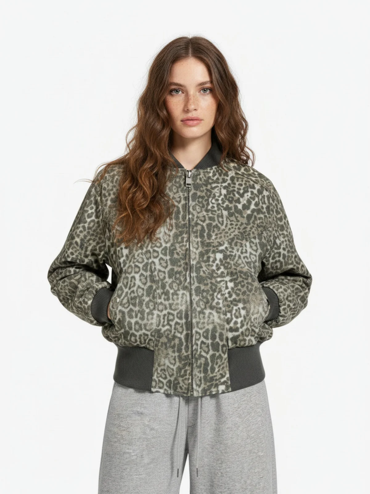Vintage Leopard Print Bomber Jacket