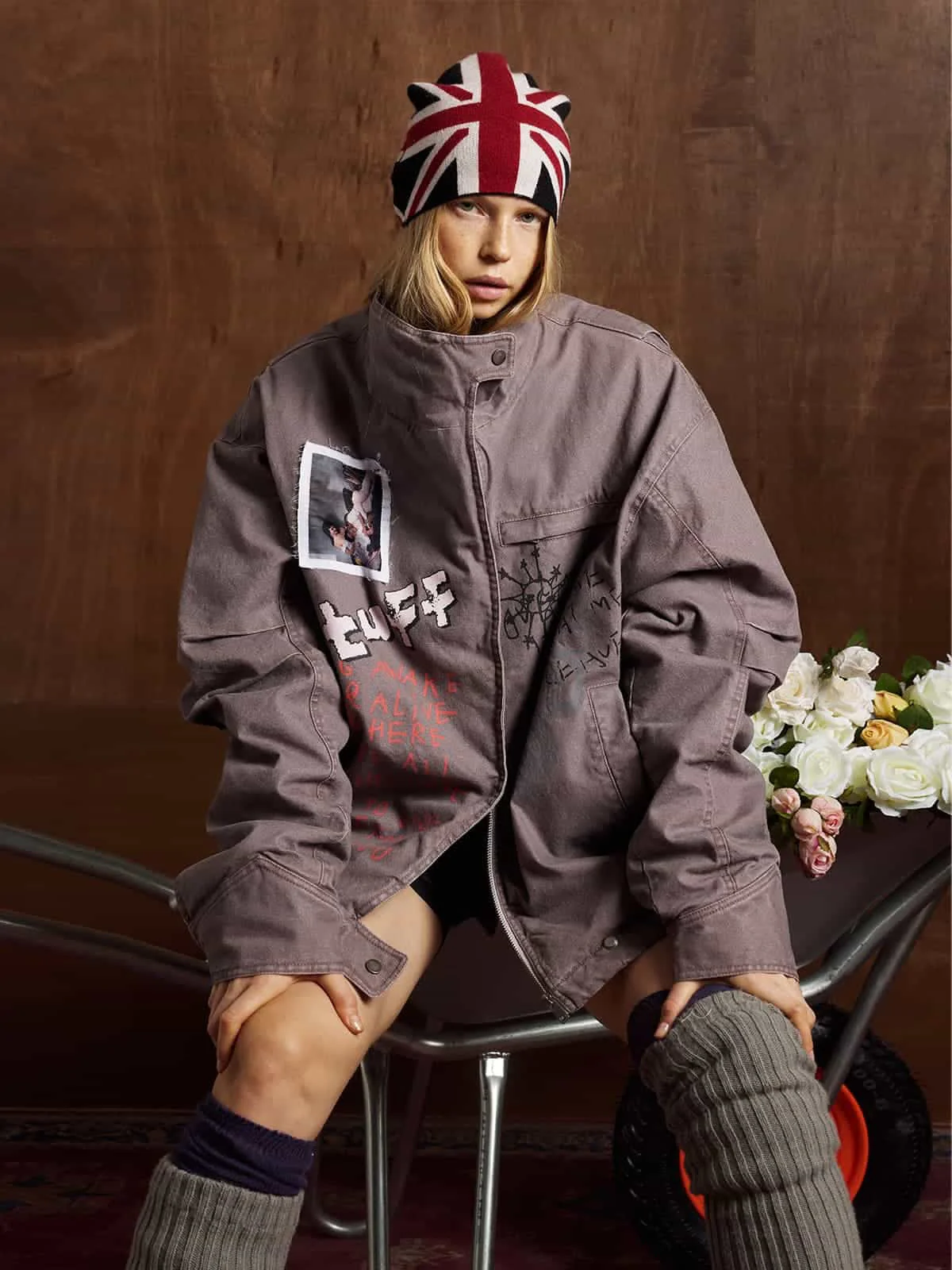 Street Graffiti Distressed High-Neck Padded Cotton Jacket