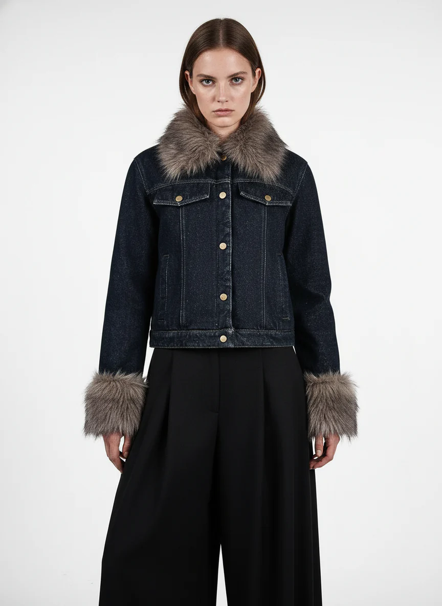 Retro Detachable Fur Collar Workwear Denim Jacket