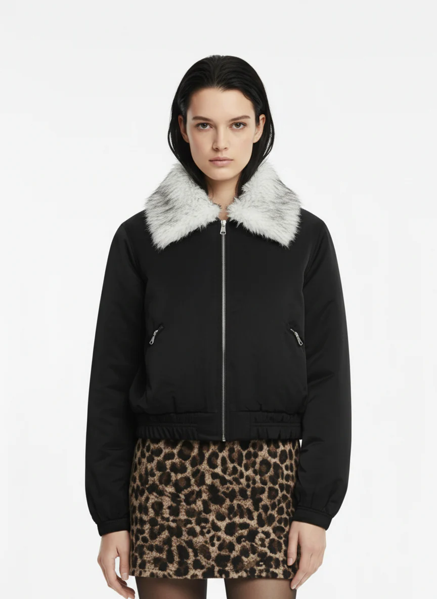 Street Faux Fur Collar Zip-Up Jacket