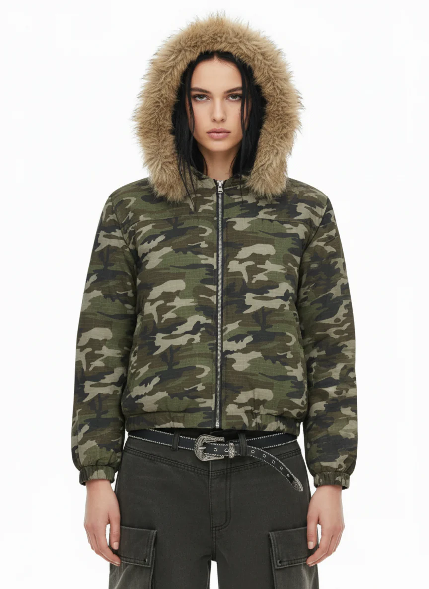 Detachable Fur Collar Forest Camo Padded Jacket