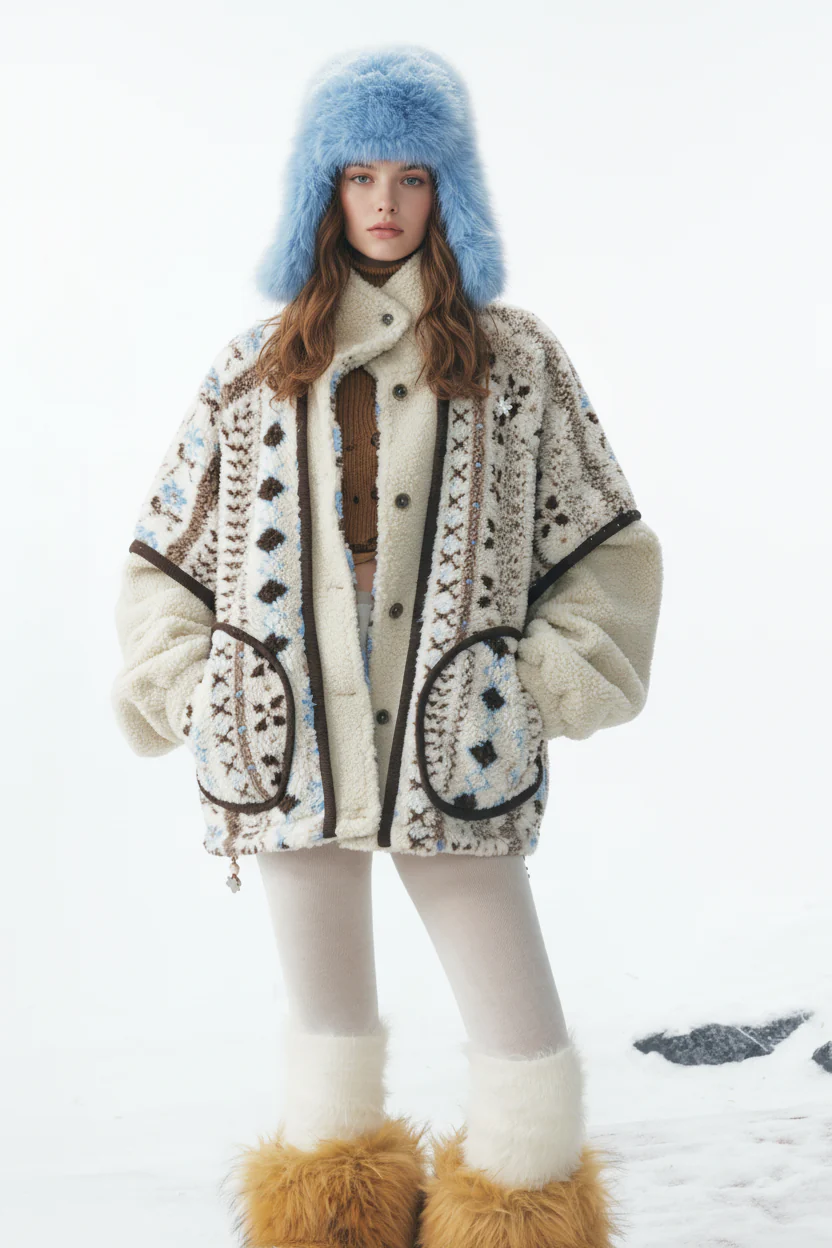 Retro Detachable Faux Fur Collar Shearling Button-Up Jacket
