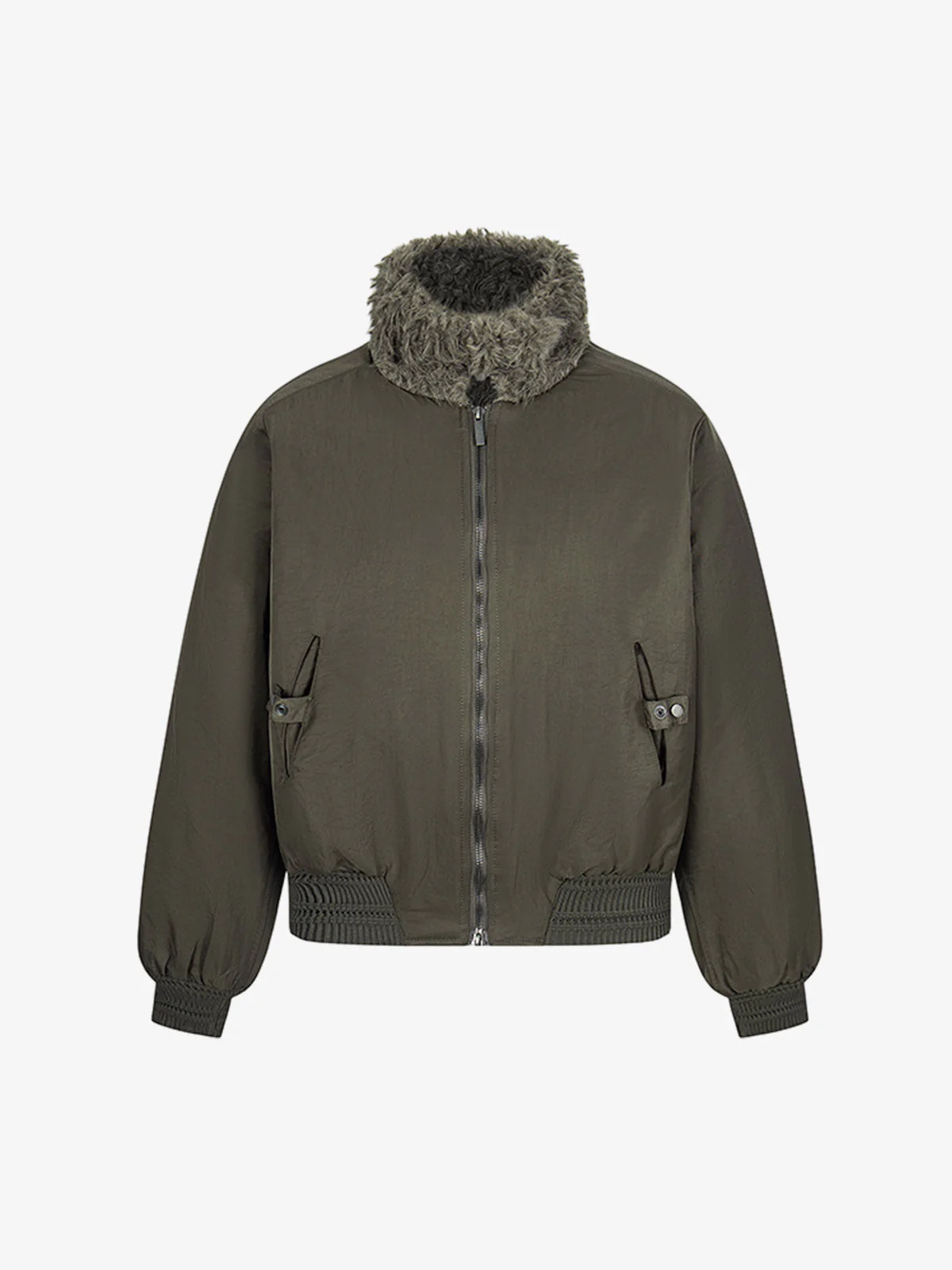Olive Green Faux Fur Collar Padded Bomber Jacket
