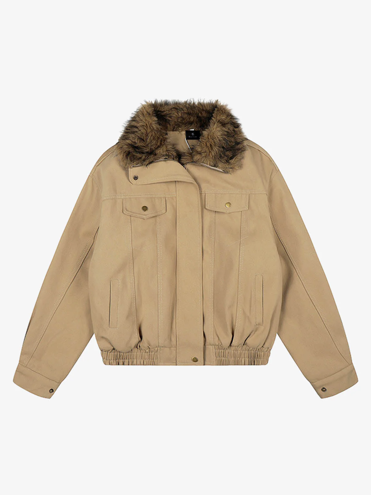 Faux Fur Collar Quilted Lined Utility Bomber Jacket
