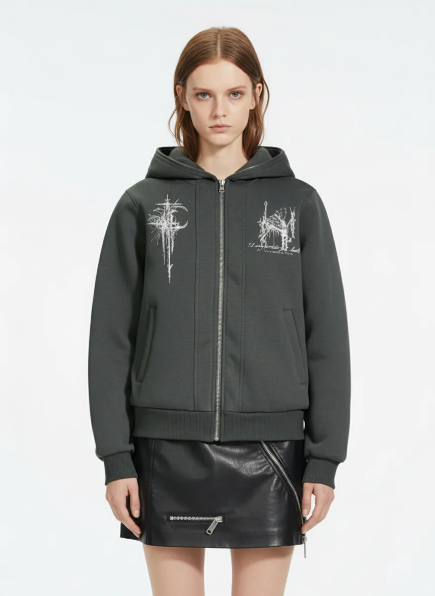 Gothic Graphic Print Zip Up Jacket