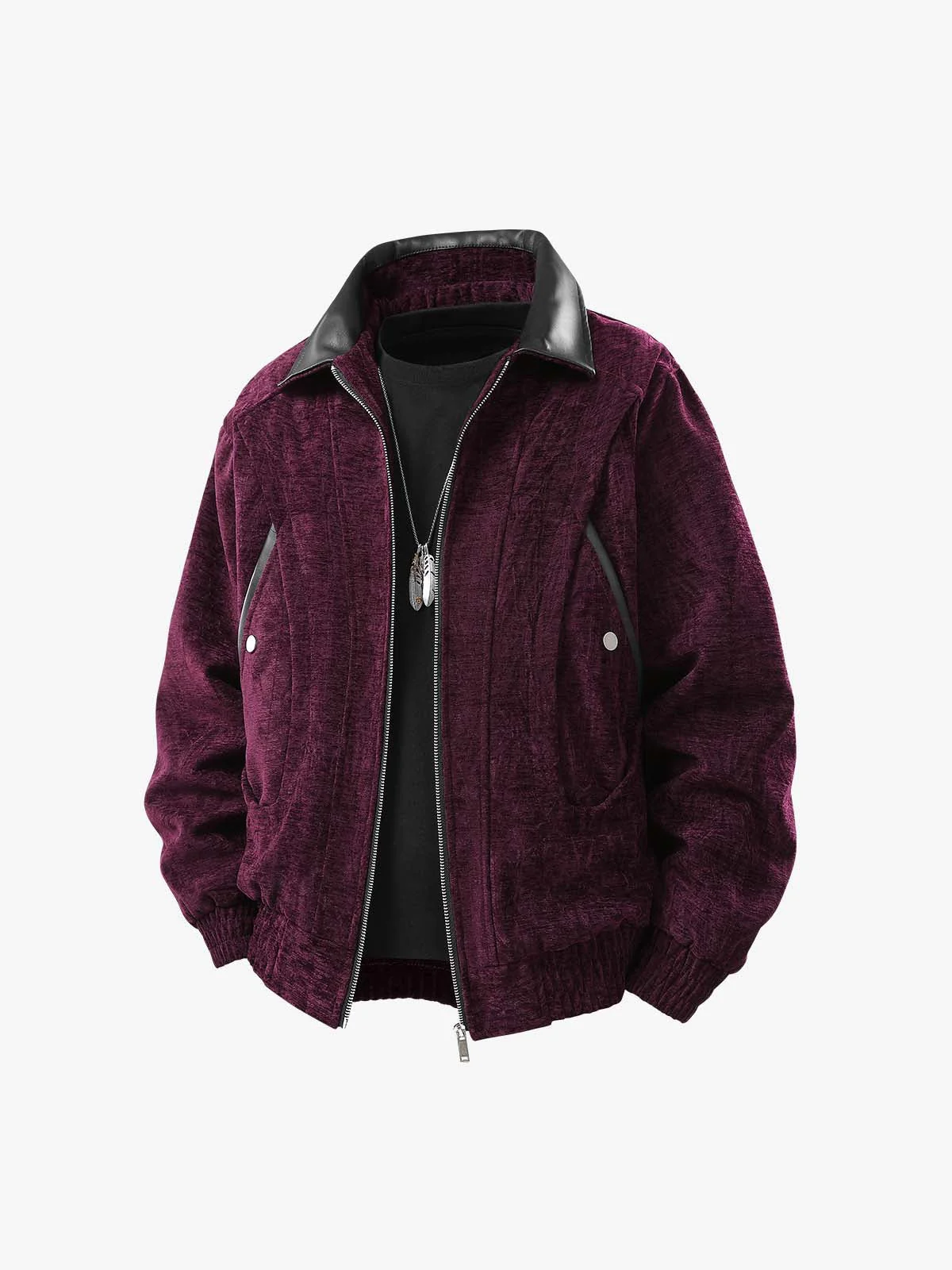 Retro Suede Patchwork PU Collar Fleece Jacket