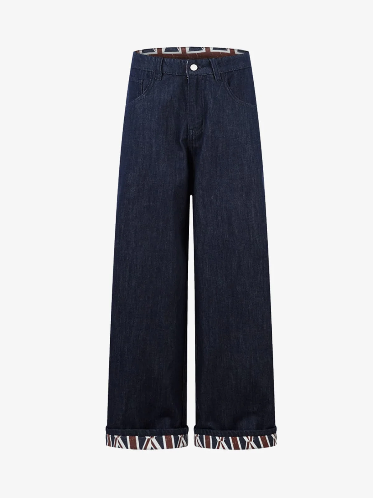 Vintage Color-Blocked Rolled Hem Wide-Leg Jeans