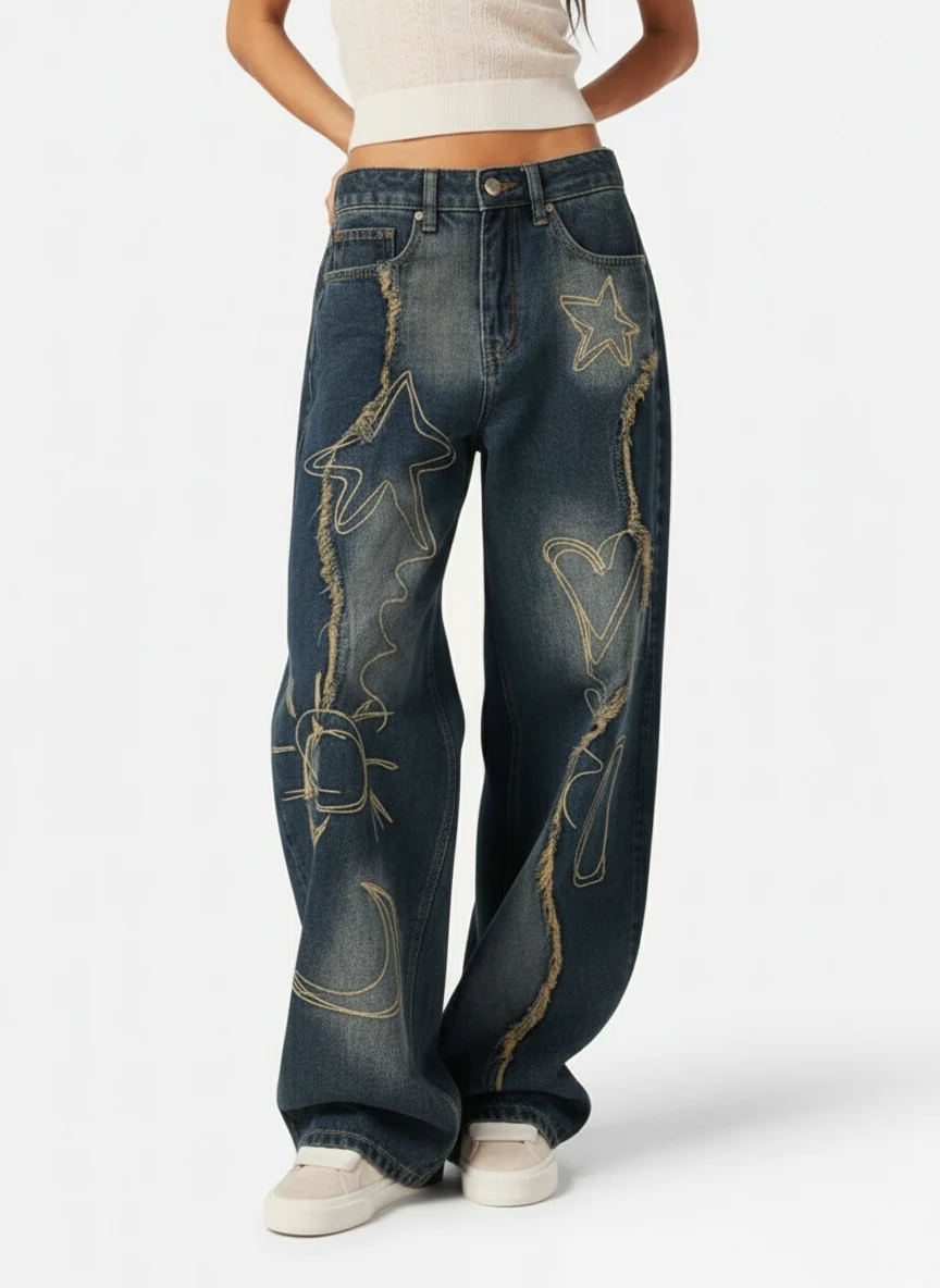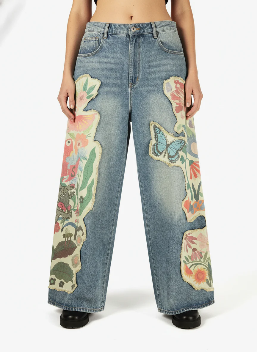 Vintage Floral Patchwork Baggy Jeans