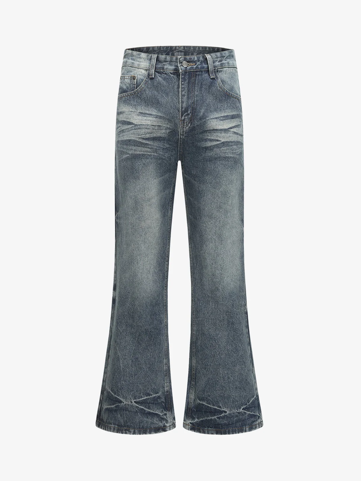 Vintage Distressed Wash Flare Jeans