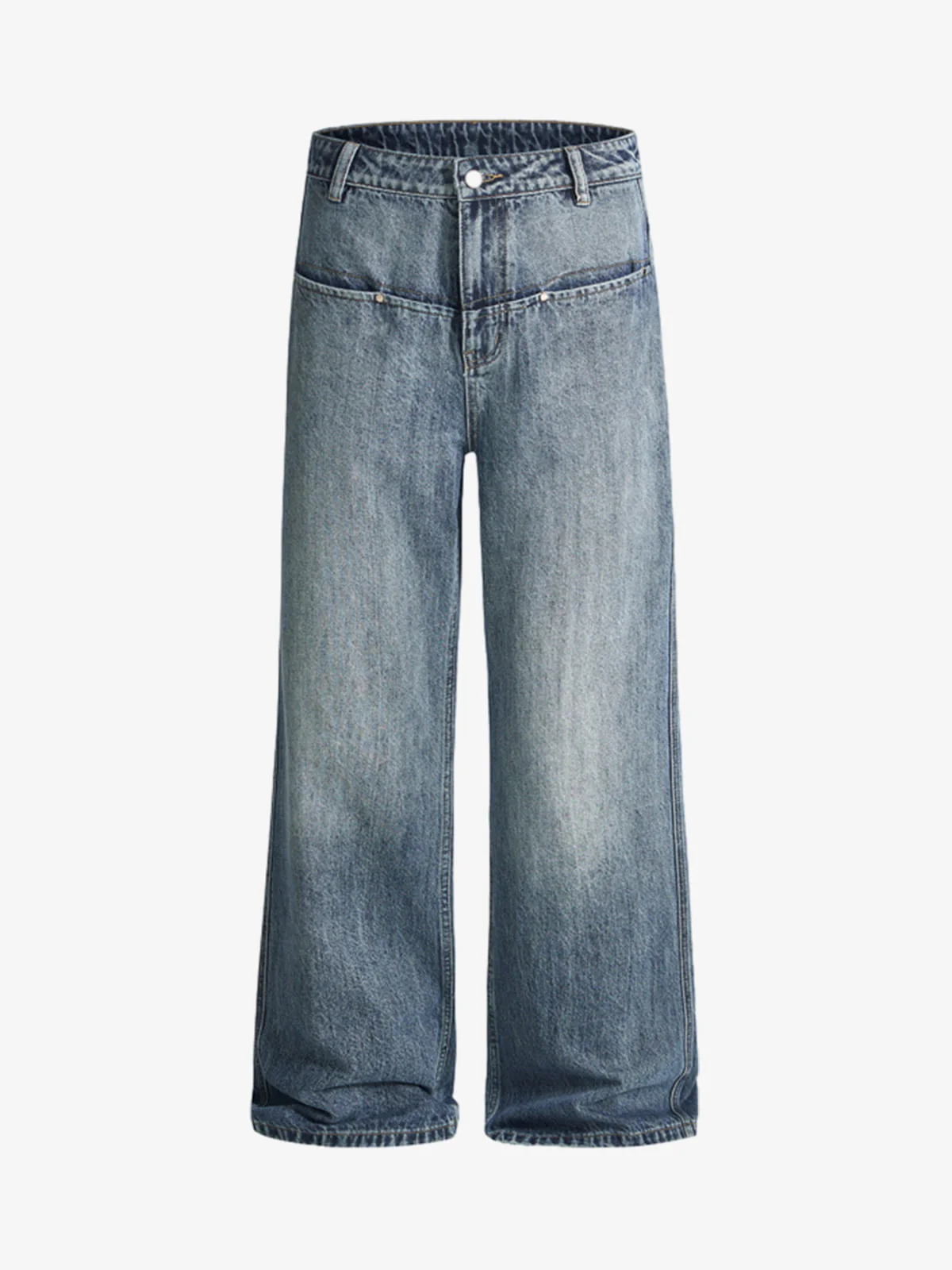 Washed Pleated Baggy Jeans
