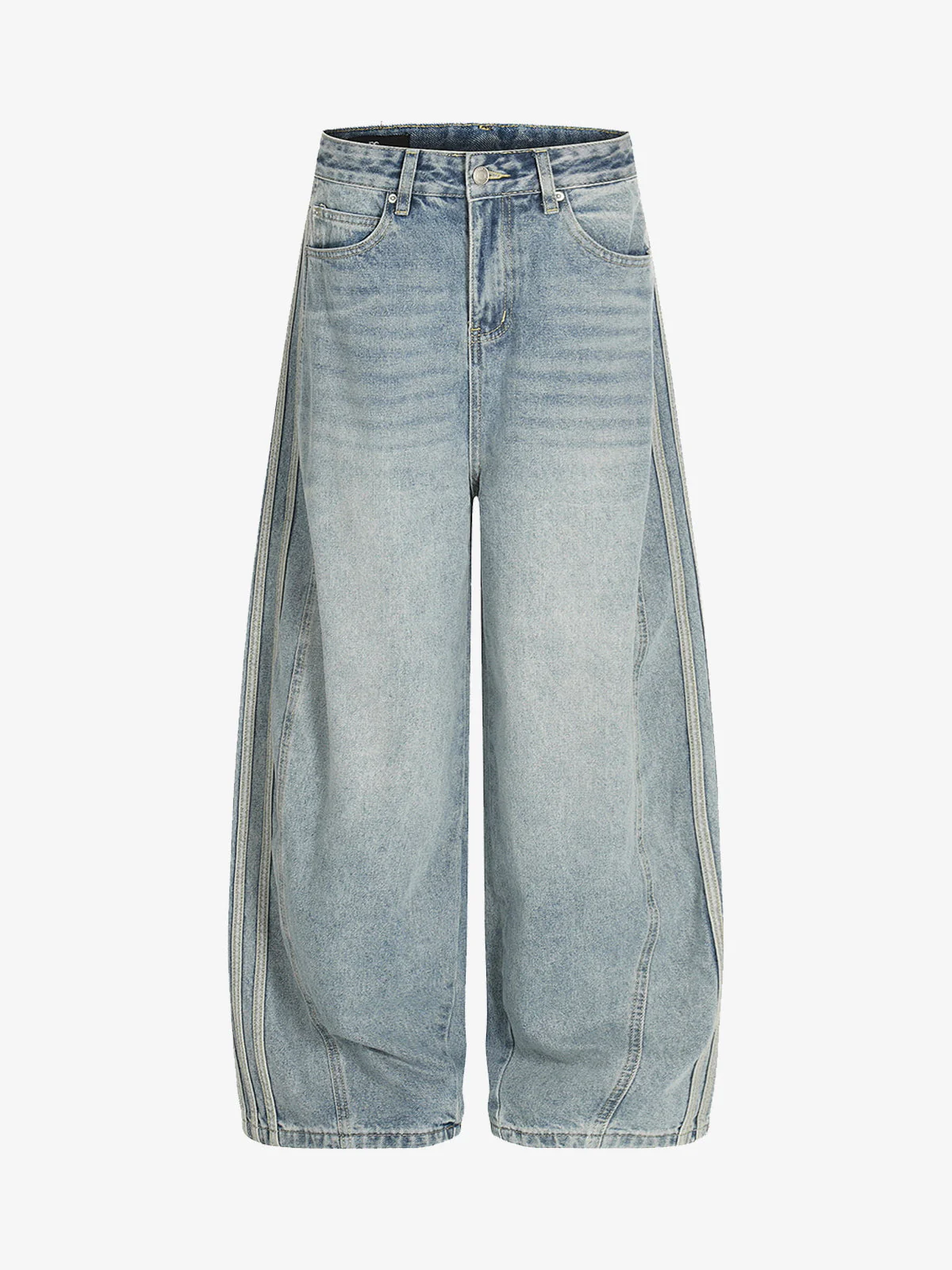Retro Washed Side Striped Barrel Denim Jeans