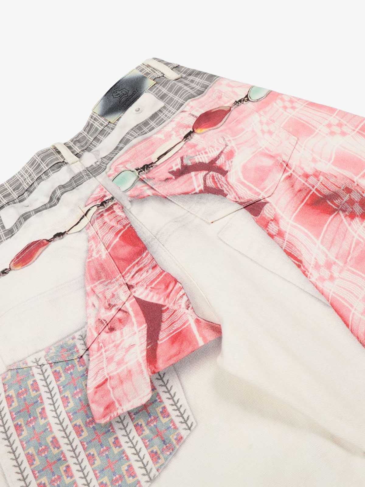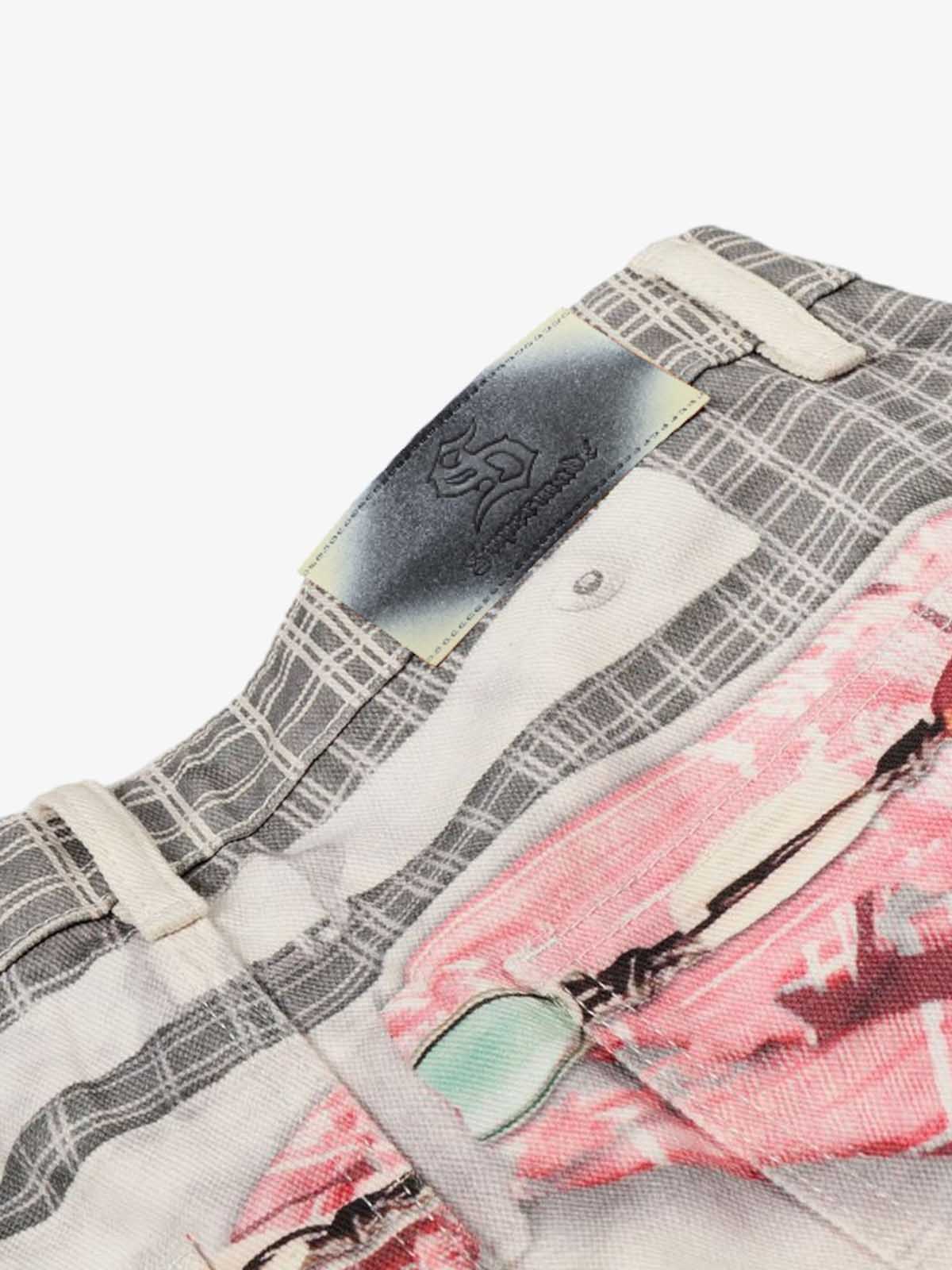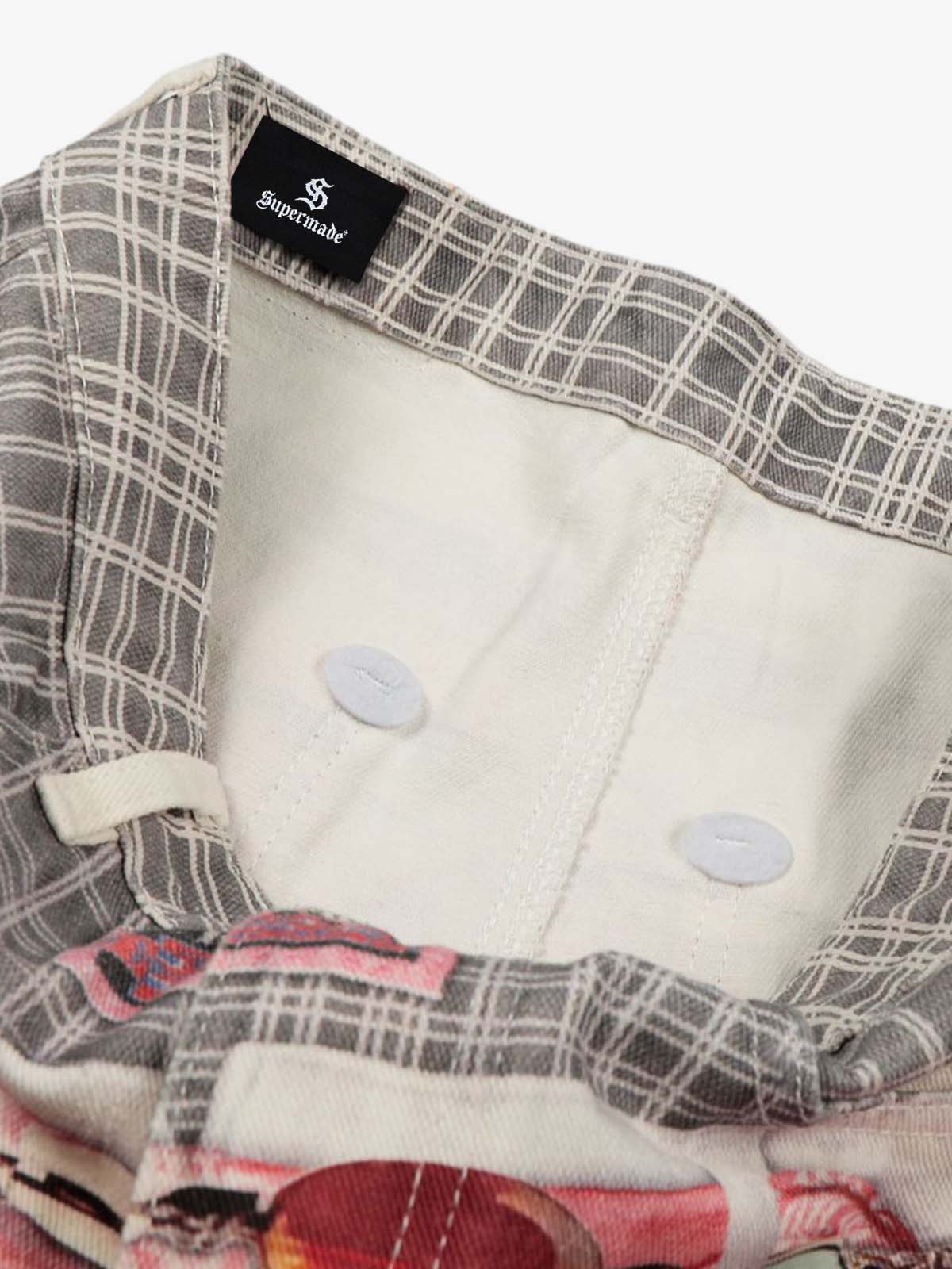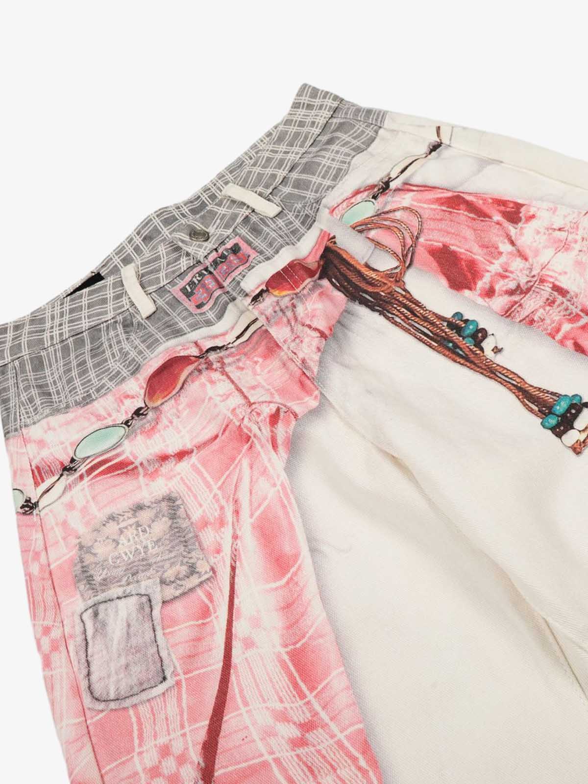Printed Patchwork Waist Graphic-Drape Barrel Jeans