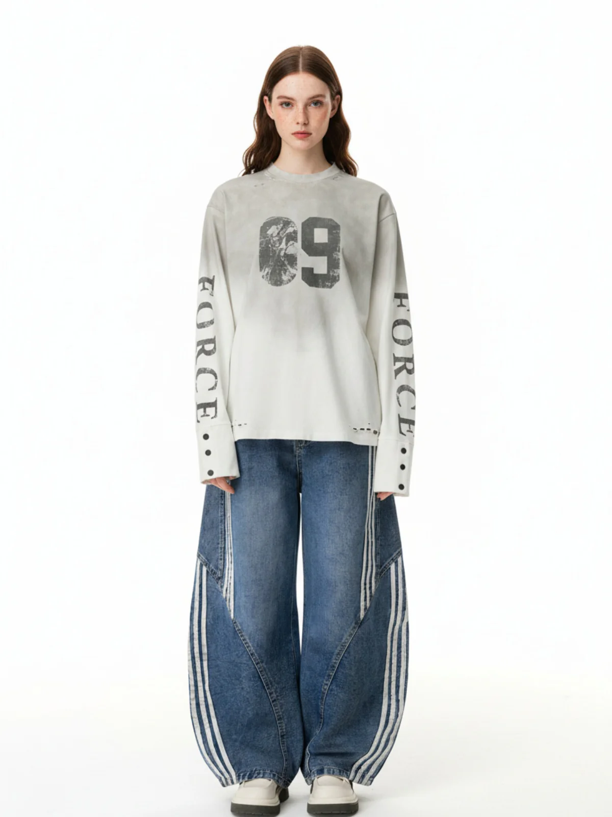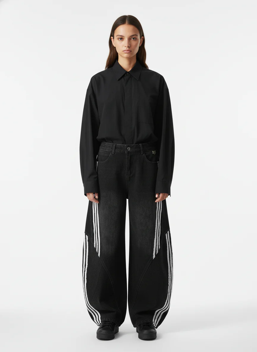 Denim Contrast Striped Stitching Barrel Jeans - 2504