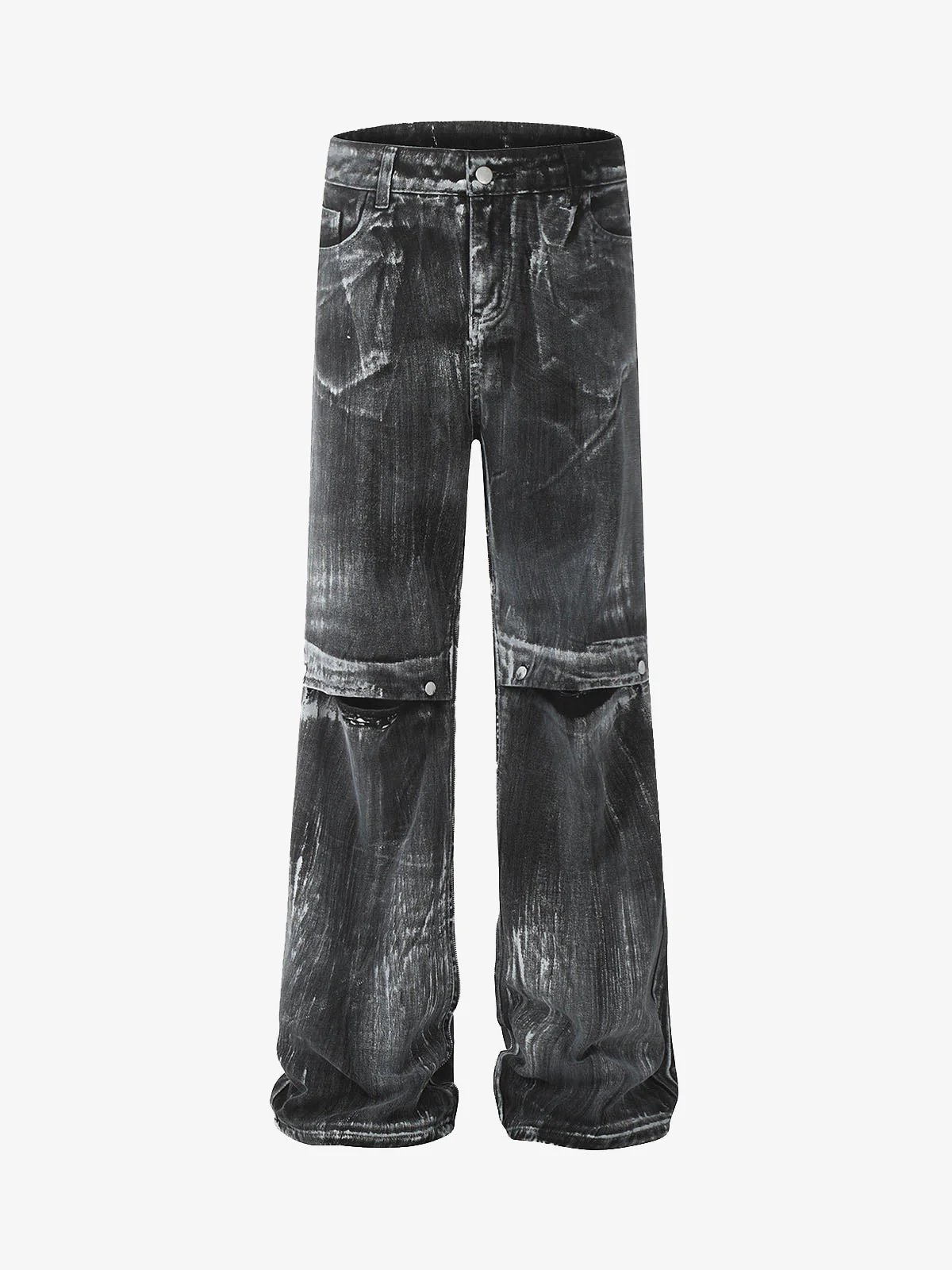 Deconstructed Split Topstitched Pleated Pocket Jeans