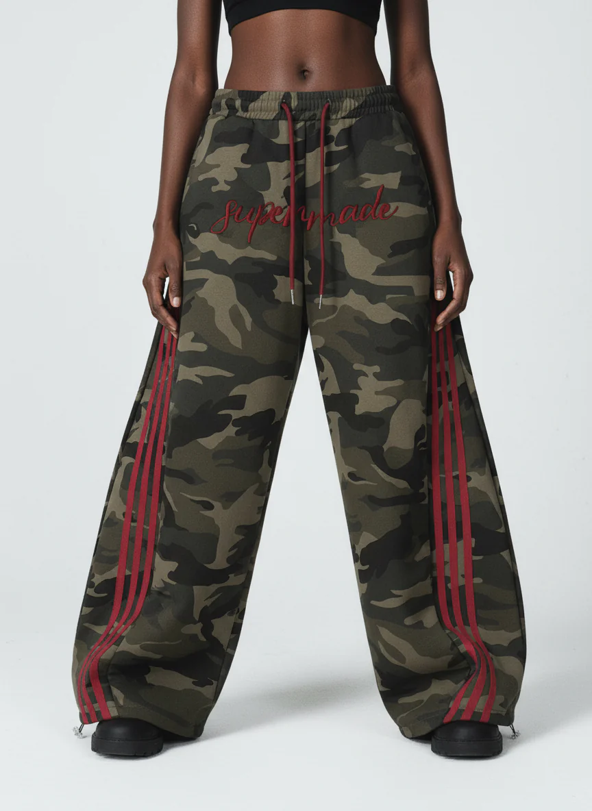 Retro Patchwork Embroidered Camouflage Barrel Pants
