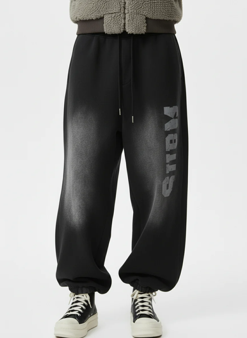 Street Washed Mottled Rivet Letter Print Baggy Sweatpants