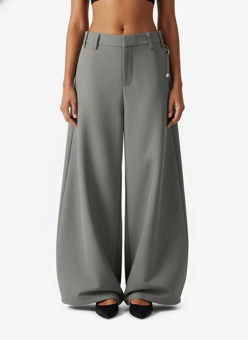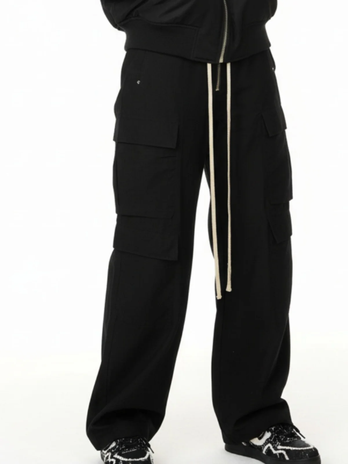 Woven Multi-Pocket Baggy Flared Pants - 2321