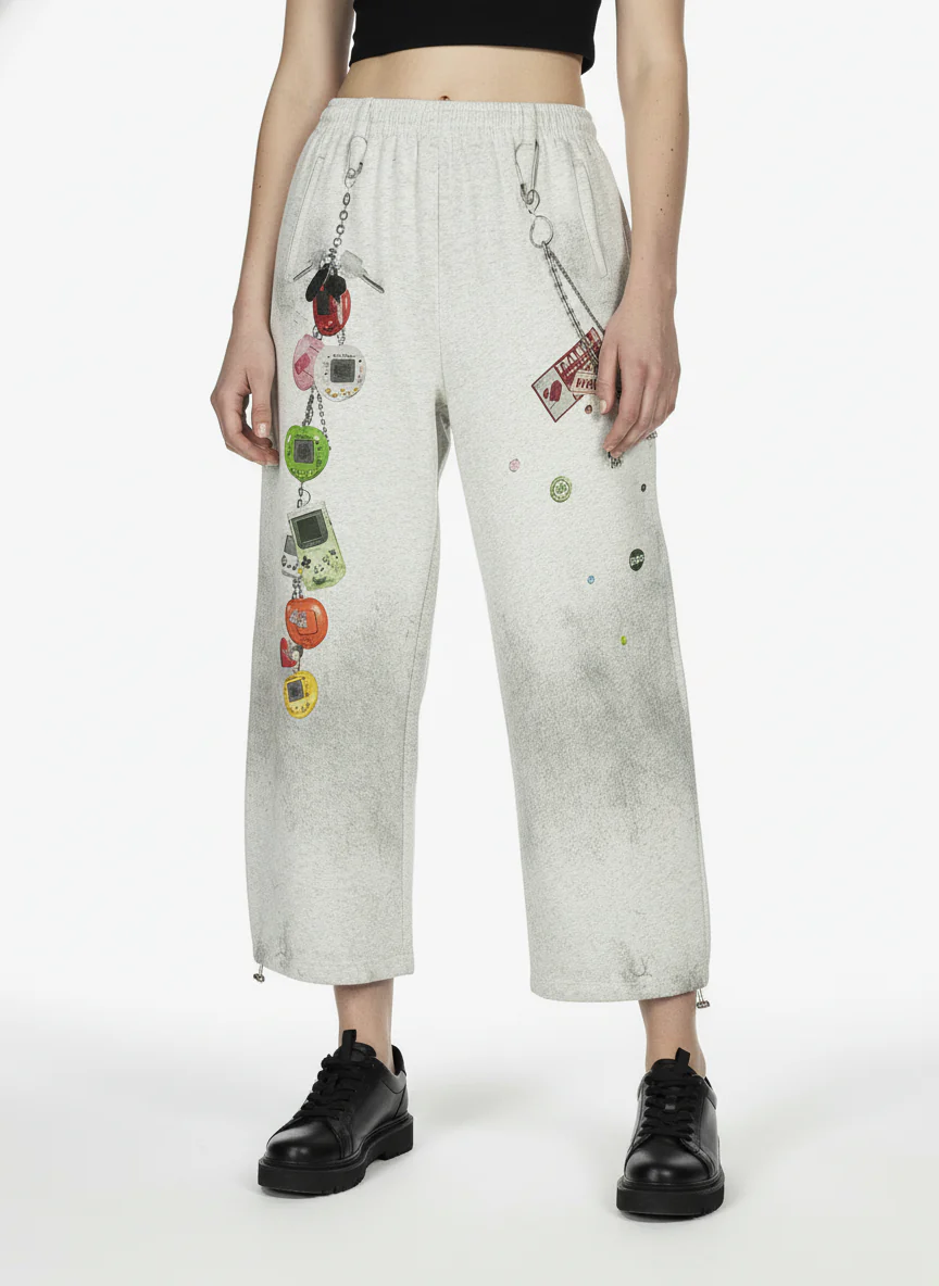 Retro Washed Creative Printed Barrel Pants