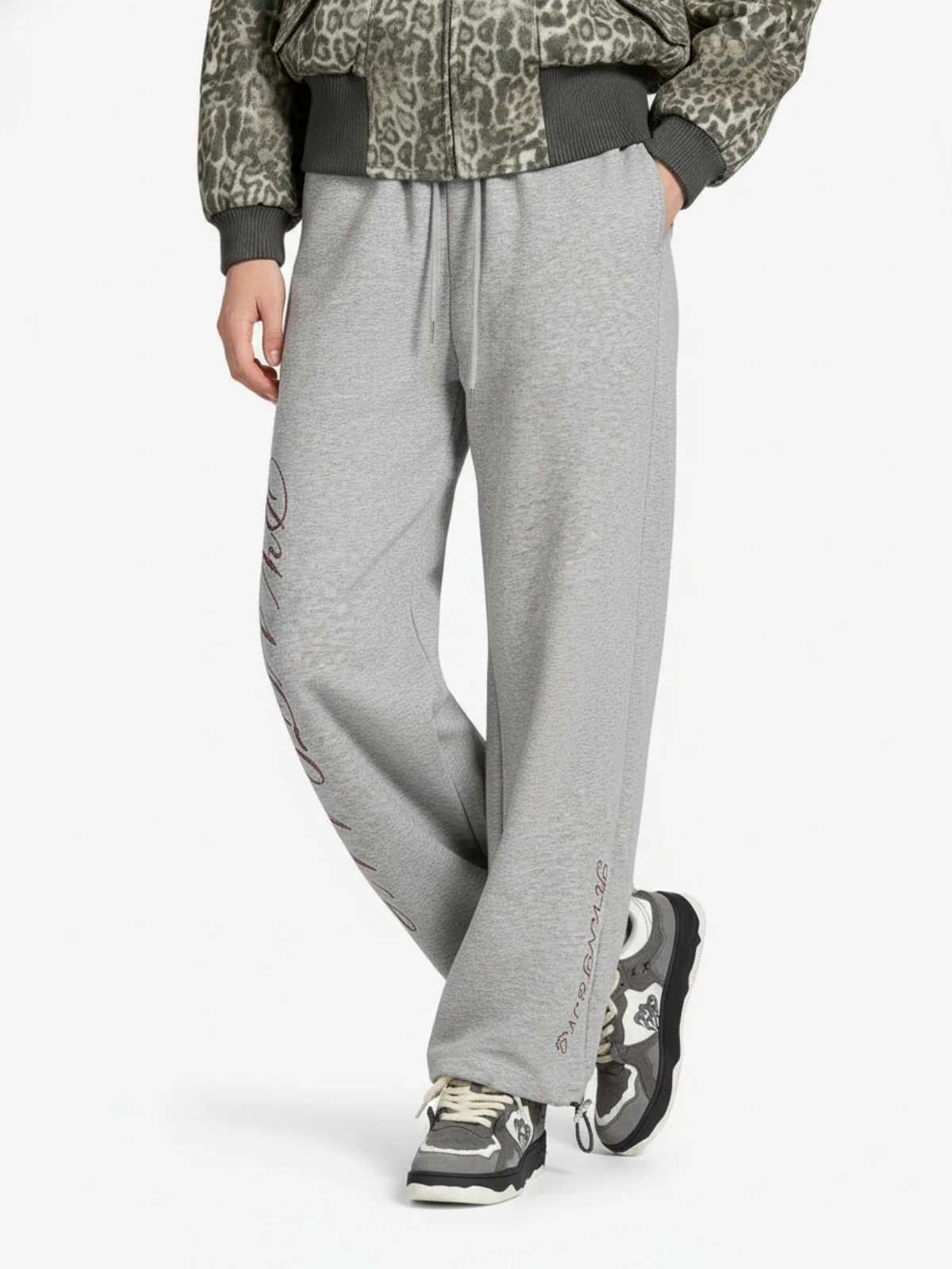Appliquéd Number Drawstring Casual Pants