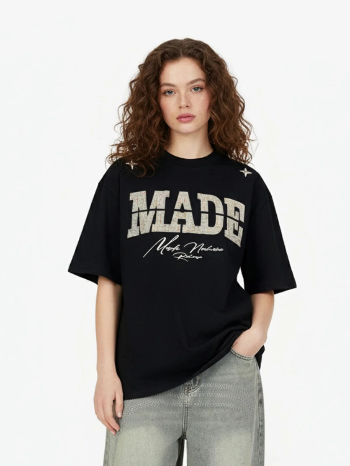 Oversized Graphic Suede Print T-Shirt