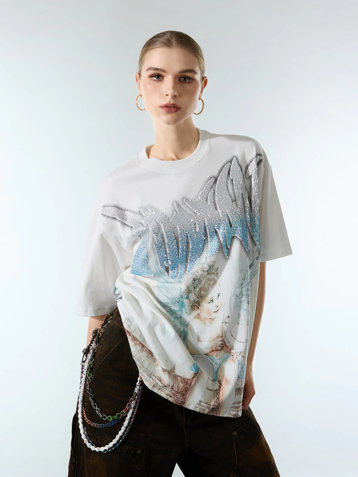 Retro Street Peace Dove Angel Rhinestone T-Shirt